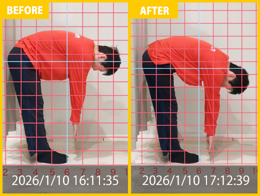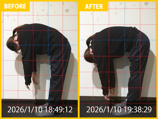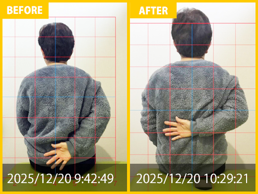 スタート時と比べると、腰の専門施術にて痛みが改善。頭痛、肩こりの悩み