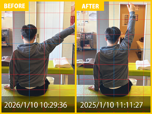 初診時は肩の痛みが出ていましたが定期的に通院を重ねるにつれて徐々に改善してきています。