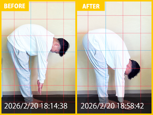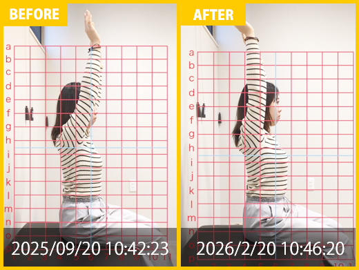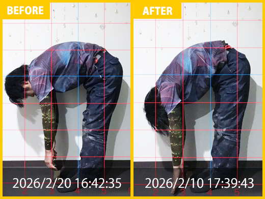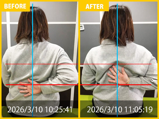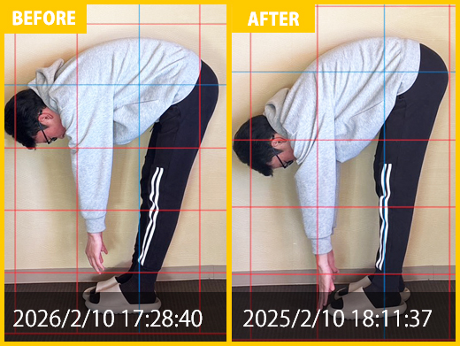 スタート時と比べると、腰の専門施術にて痛みが改善。