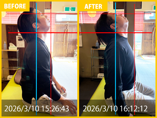 サッカー時の腰痛に悩んでおられましたが、CIPや矯正施術により痛み消失、現在はパフォーマンスUPの為のストレッチをされています。肩の痛みと姿勢の悪さの悩み