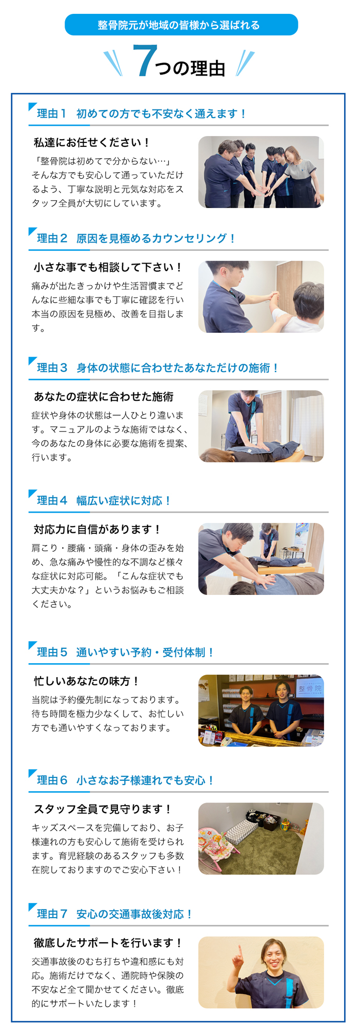 整骨院元 菊陽町光の森院は、落ちついた清潔感のある空間の中でリラックスして頂けるよう居心地のよい場所作りを目指しています。