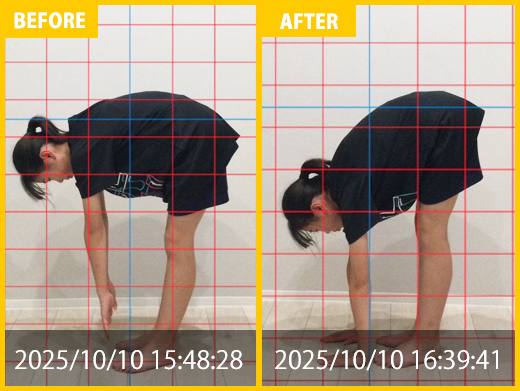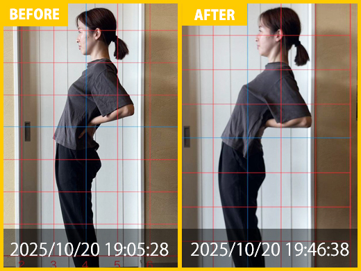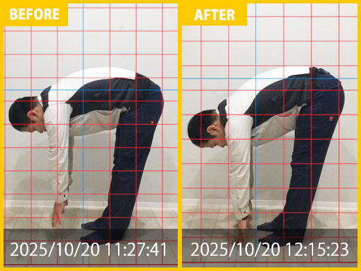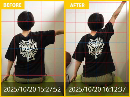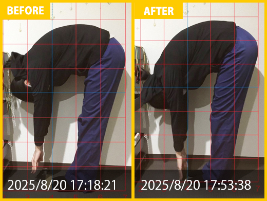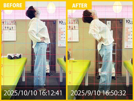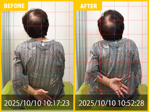 腰周囲の筋肉の強張りにより腰に痛みが出ていましたが、矯正施術により痛みは消失されています。
