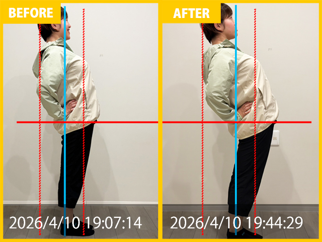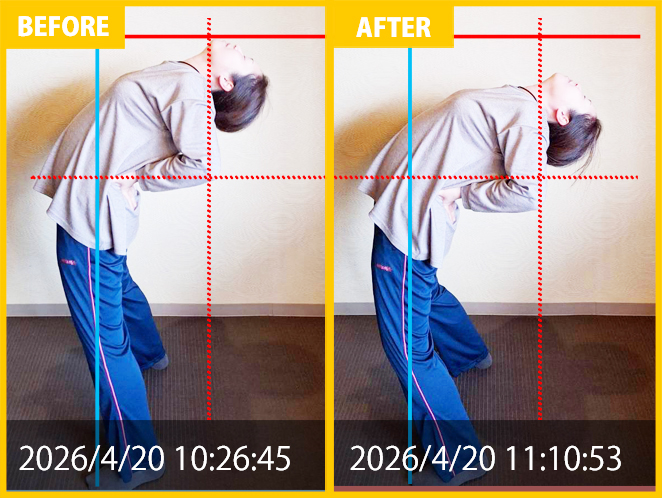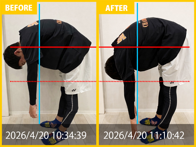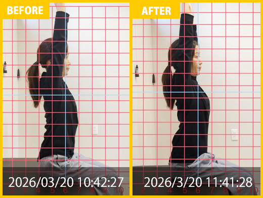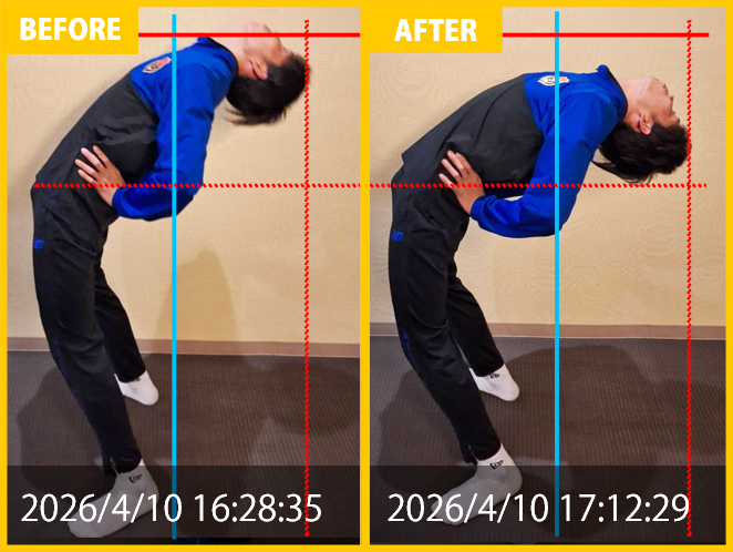 施術後は可動域が広がり、スムーズに動ける状態へ変化されています。